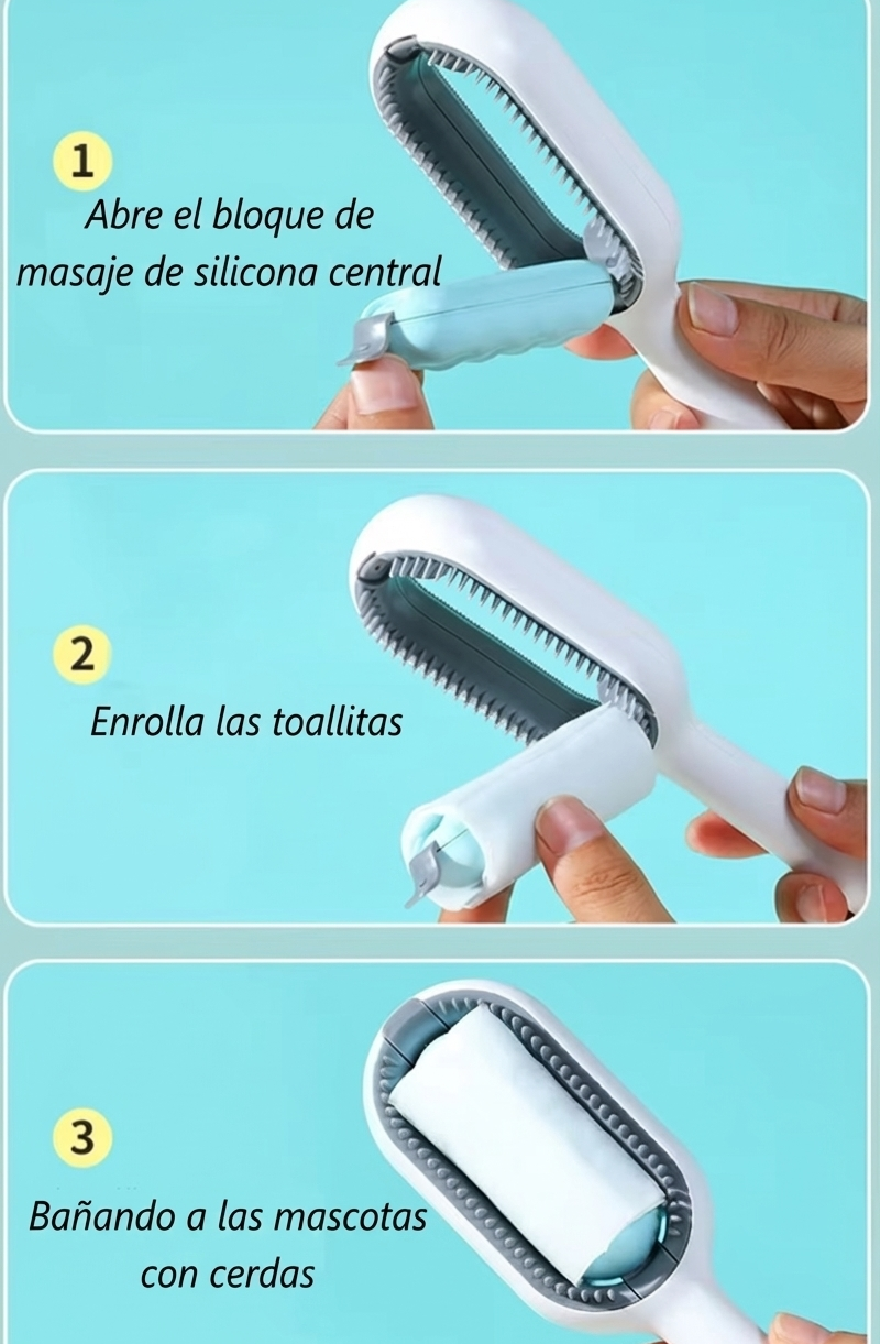 Cepillo Profesional 3 en 1: Peina, Baña y Limpia Pelusas